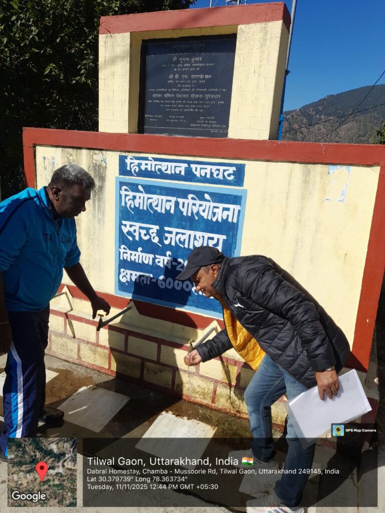 On 11 November 2025, what began as a routine field visit unfolded into a vivid reminder of why water and sanitation work in Himalayan villages matters to health, dignity, and livelihoods. Traveling with RDI team– Mr. Naresh Thapliyal and Mr. Gaurav, the ascent toward Chamba revealed pine lined bends and sudden openings to snow clad Himalayan peaks –beauty set against the daily challenges that mountain communities endure.